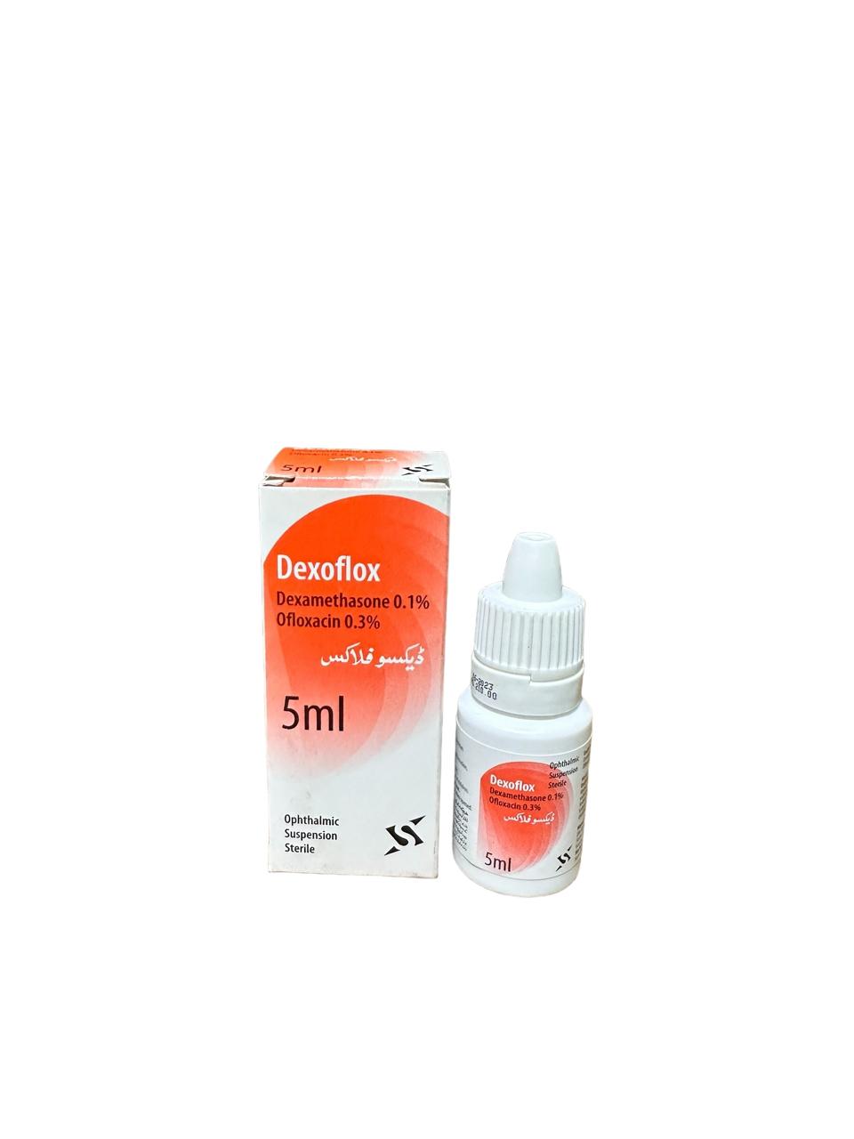This medication is used to treat eye infections. Ofloxacin belongs to a class of drugs called quinolone antibiotics. It works by stopping the growth of bacteria. This medication treats only bacterial eye infections.. Dexamethasone, a corticosteroid, has been shown to suppress inflammation by inhibiting multiple inflammatory cytokines resulting in decreased edema, fibrin deposition, capillary leakage and migration of inflammatory cells.