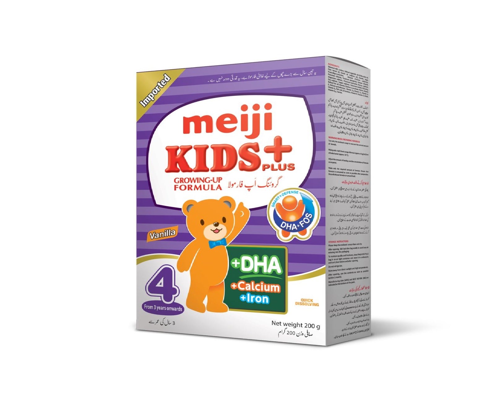 Meiji Kids plus is a high quality growing up formula, designed to provide the nutritional support required for the healthy growth of children aged 3 years and onwards. Well-balanced nutrition is essential during a childs rapid growth phase.Fortified with high quality protein and nutrition, essential for the physical foundation of child.Fortified with Calcium, essential for healthy teeth and bones.Contains sufficient amount of iron that plays important role in production of red blood cell and is an essential component of hemoglobin.Contains milk phospholipids derived from cows milk that is a good source of sphingomyelin.