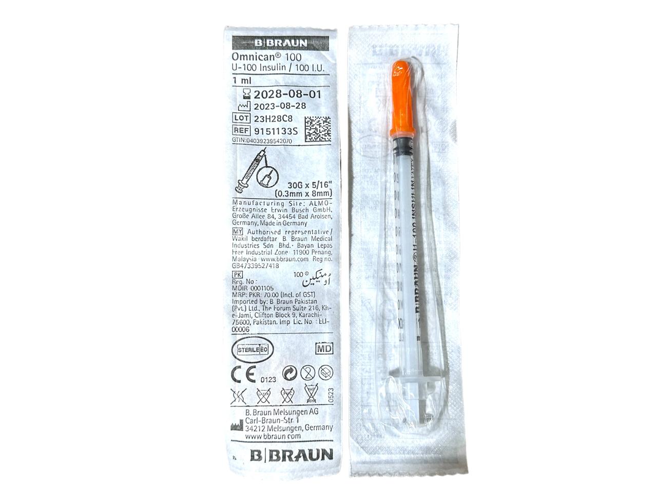 Buy SYRINGE Omnican B. BRAUN 1CC INSULINE 1 CC and get it delivered at your door step only from Multan Plus Pharmacy.